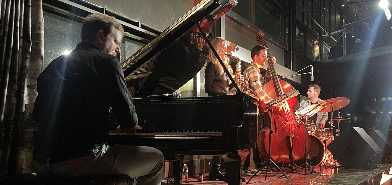 Dmitry Baevsky Quartet ft. Peter Bernstein with David Wong on bass and Jason Brown on drums.
