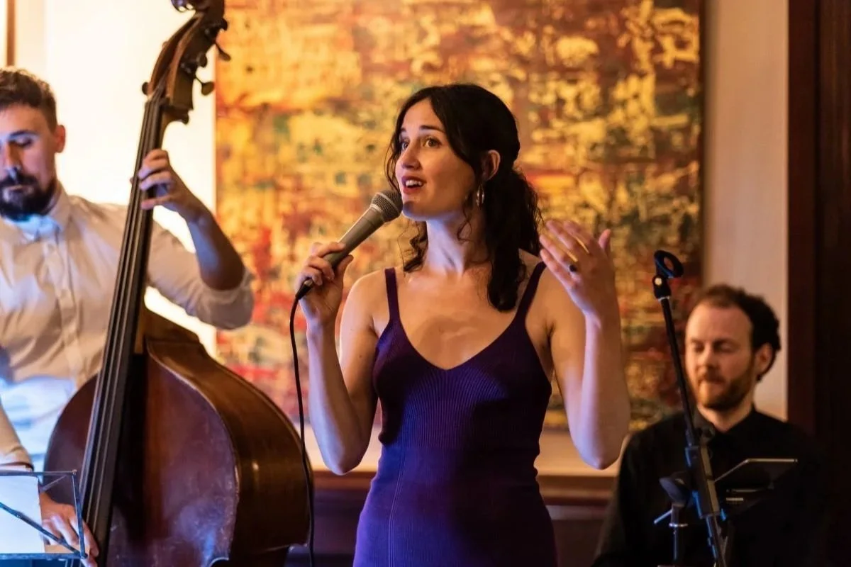 Guests are seated at elegantly set tables and can enjoy a carefully crafted menu and sophisticated cocktails, but once the performance begins, attention turns entirely to the stage. Conversations soften, lights dim, and the room becomes a dedicated listening space.