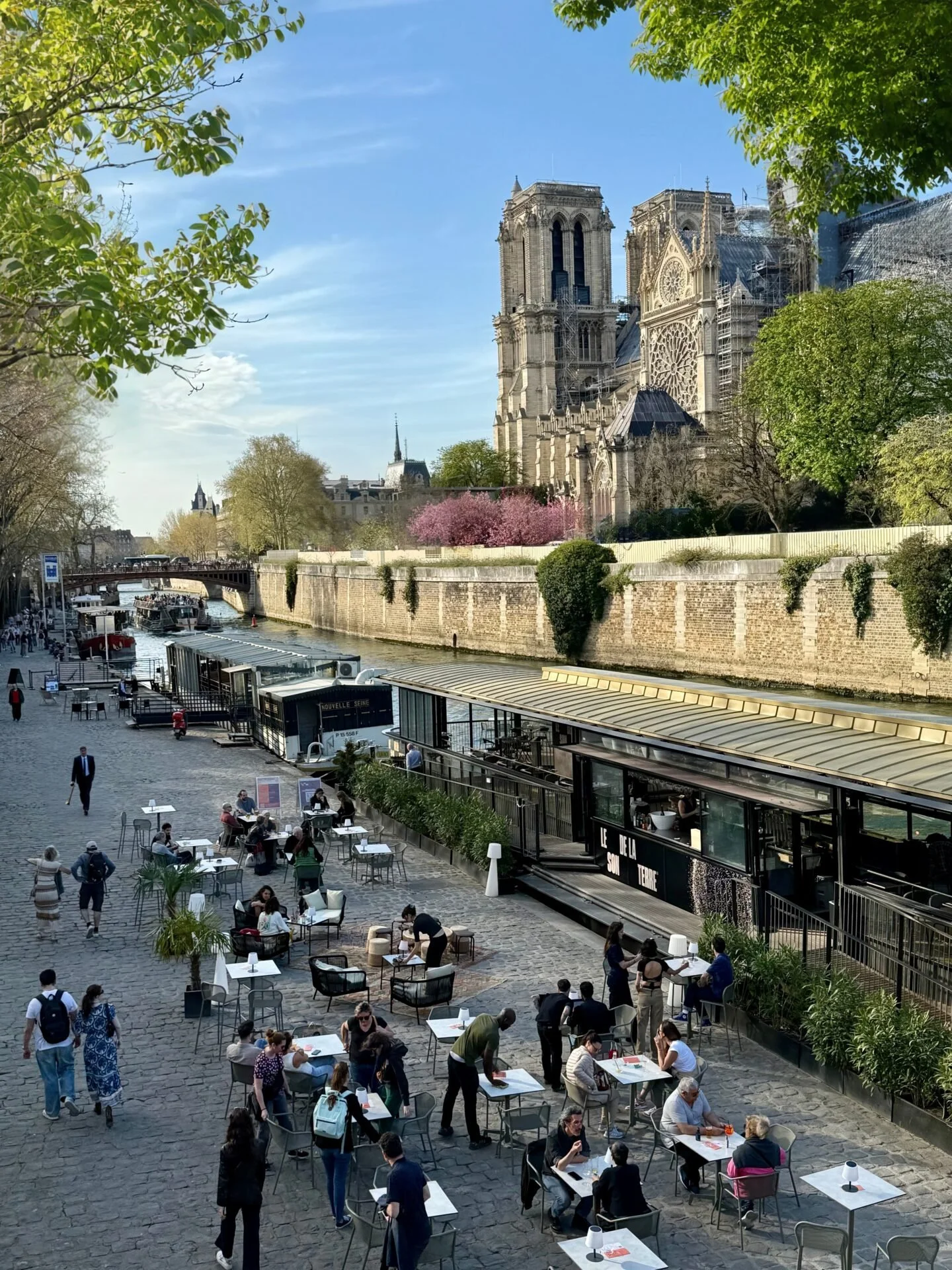 Moored just beside Notre-Dame Cathedral, Le Son de la Terre is not simply a restaurant with live music — it operates as a true jazz club with a full dining experience.